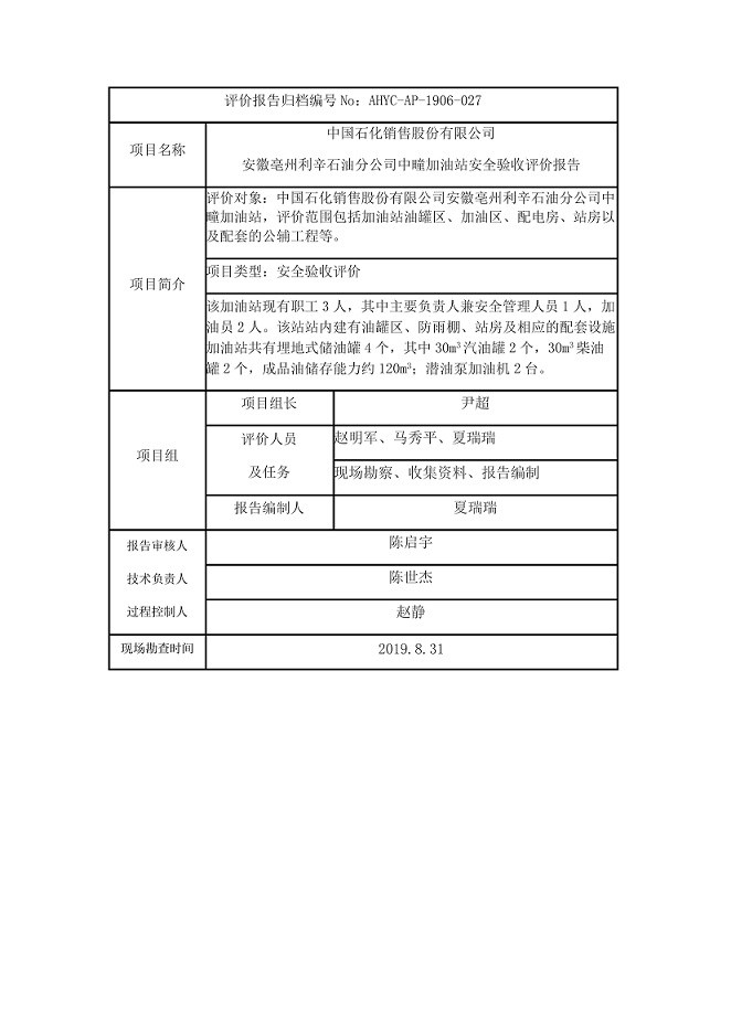 中國石化銷售股份有限公司 安徽亳州利辛石油分公司中疃加油站