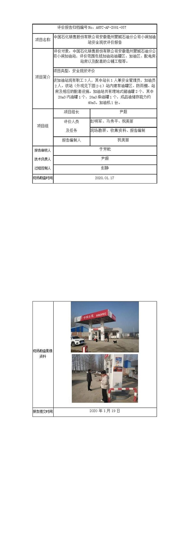 中國石化銷售股份有限公司安徽亳州蒙城石油分公司小澗加油站