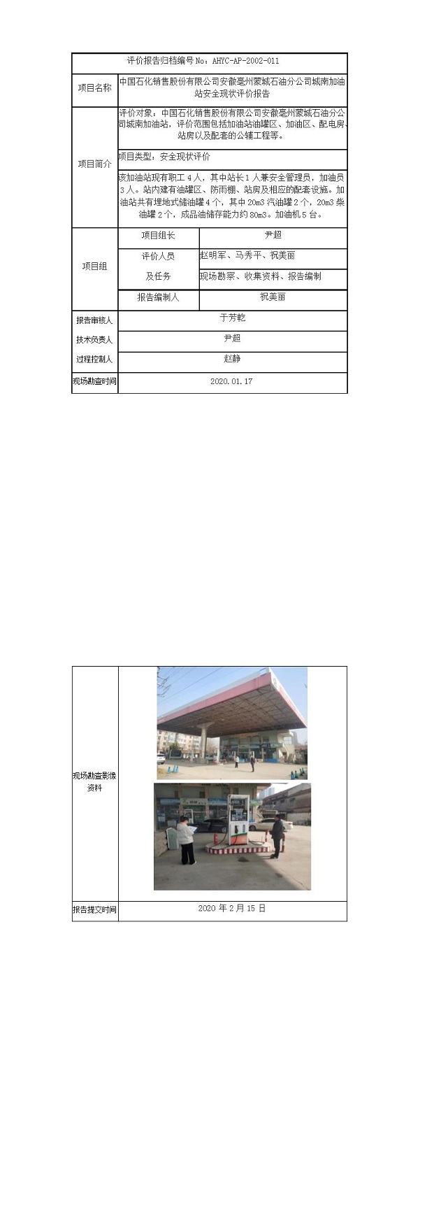 中國石化銷售股份有限公司安徽亳州蒙城石油分公司城南加油站