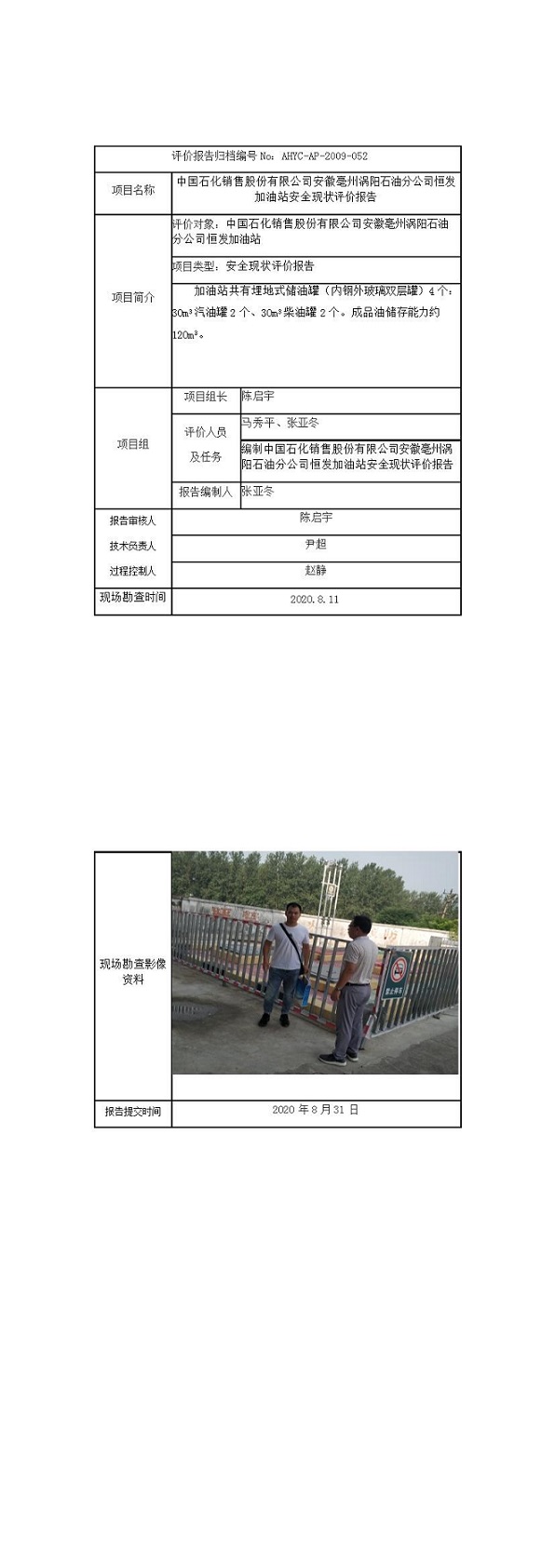 中國(guó)石化銷售股份有限公司安徽亳州渦陽石油分公司恒發(fā)加油站安全現(xiàn)狀評(píng)價(jià)報(bào)告