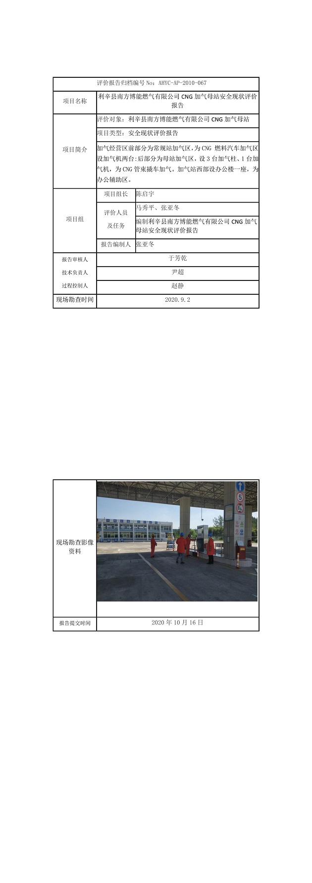 利辛縣南方博能燃氣有限公司CNG加氣母站安全現狀評價