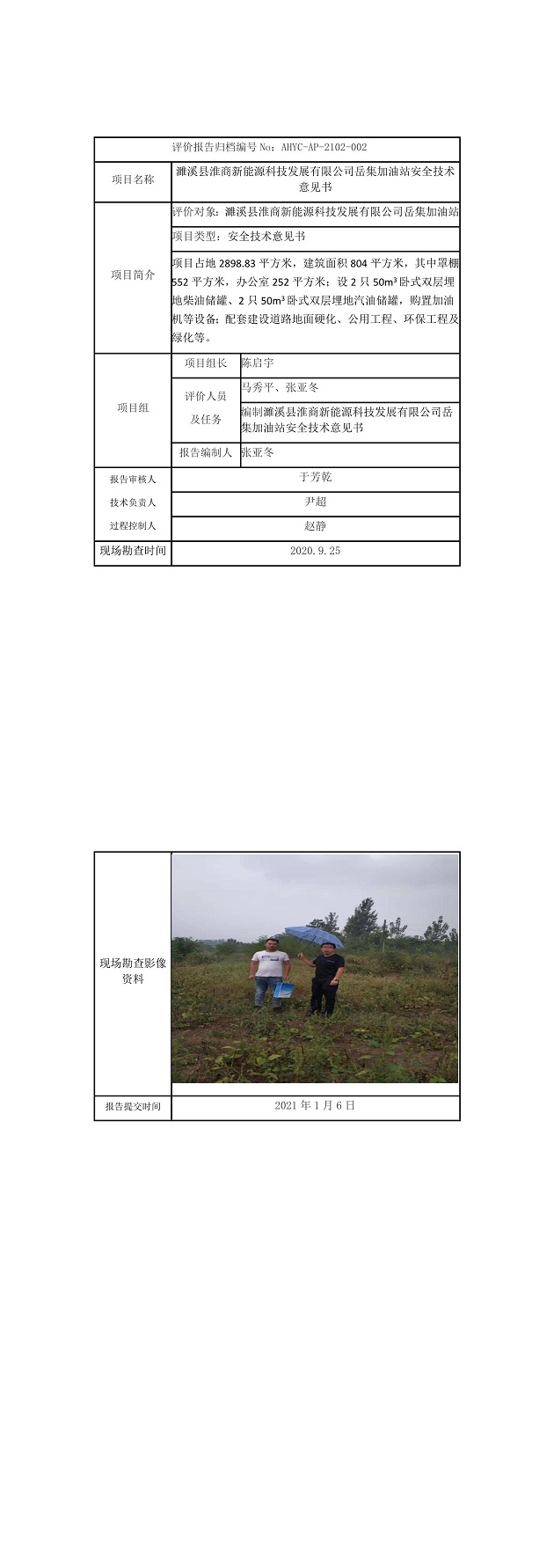 濉溪縣淮商新能源科技發(fā)展有限公司岳集加油站安全技術(shù)意見(jiàn)書(shū)