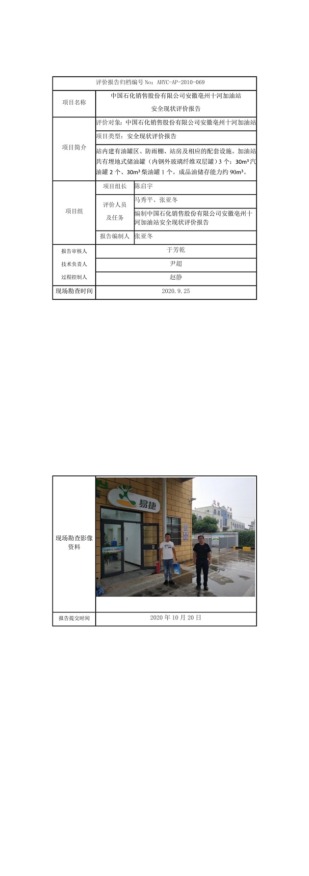 中國石化銷售股份有限公司安徽亳州十河加油站 安全現狀評價