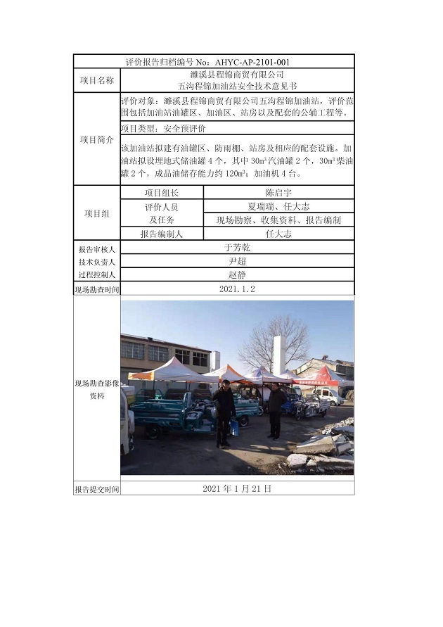 濉溪縣程錦商貿有限公司 五溝程錦加油站安全技術意見書