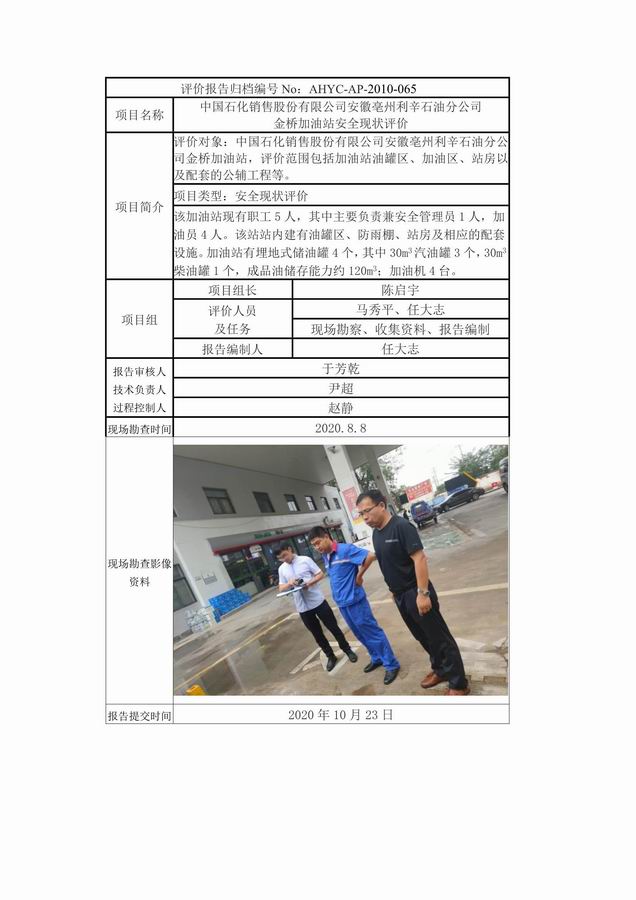 中國石化銷售股份有限公司安徽亳州利辛石油分公司 金橋加油站安全現狀評價