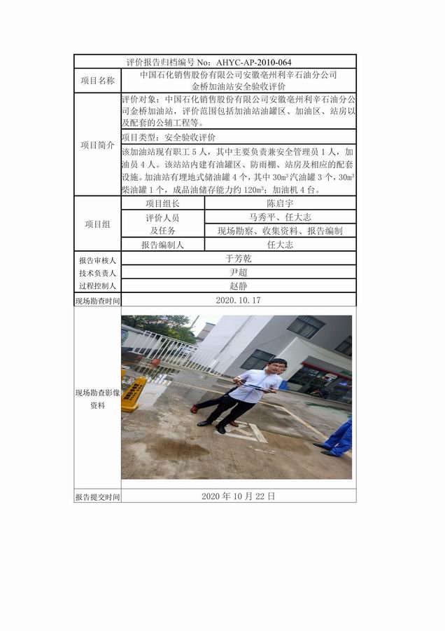 中國石化銷售股份有限公司安徽亳州利辛石油分公司 金橋加油站安全驗收評價