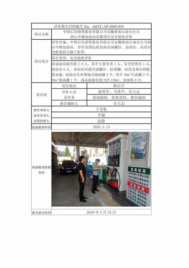 中國石化銷售股份有限公司安徽淮南石油分公司 洞山中路加油站改建項目安全驗收評價