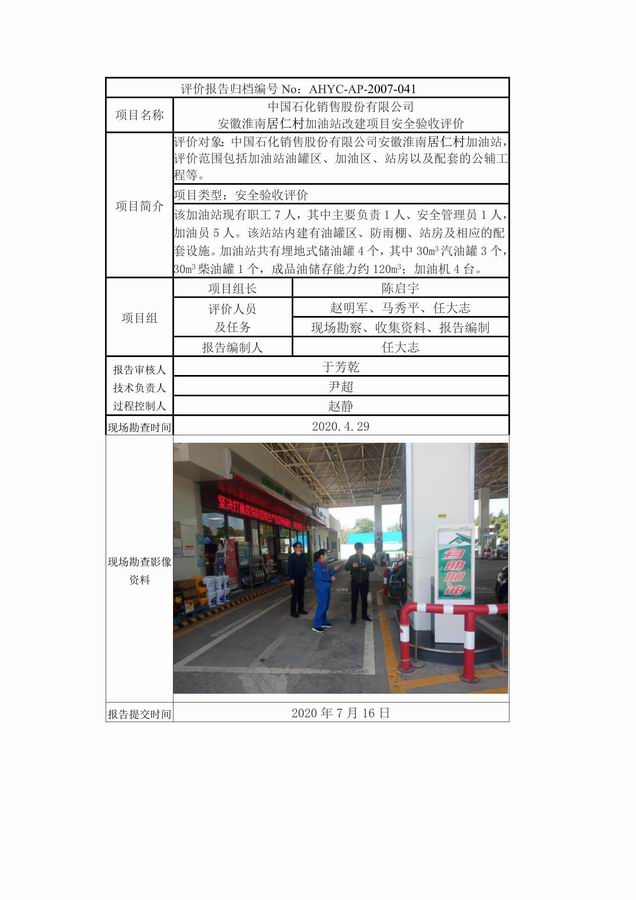 中國石化銷售股份有限公司 安徽淮南居仁村加油站改建項目安全驗收評價