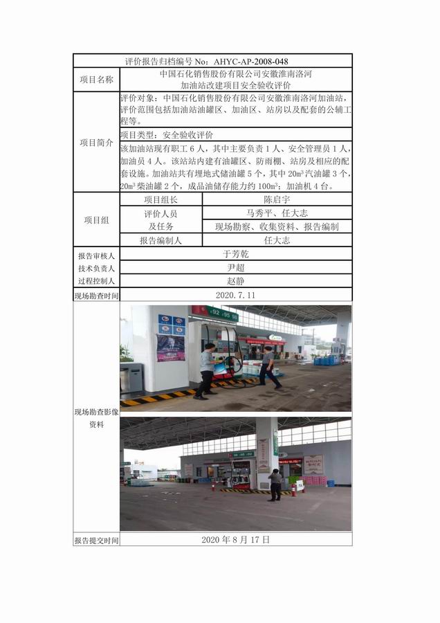 中國石化銷售股份有限公司安徽淮南洛河 加油站改建項目安全驗收評價