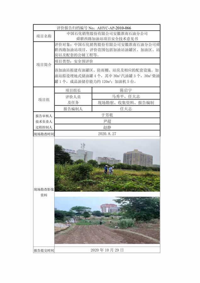 中國(guó)石化銷售股份有限公司安徽淮南石油分公司 舜耕西路加油站項(xiàng)目安全技術(shù)意見書