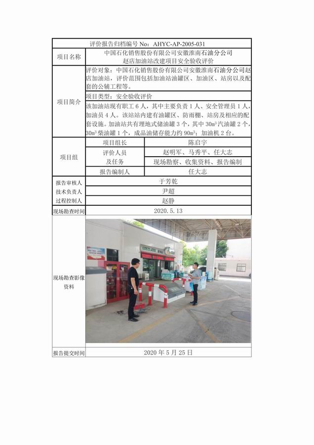 中國石化銷售股份有限公司安徽淮南石油分公司 趙店加油站改建項目安全驗收評價