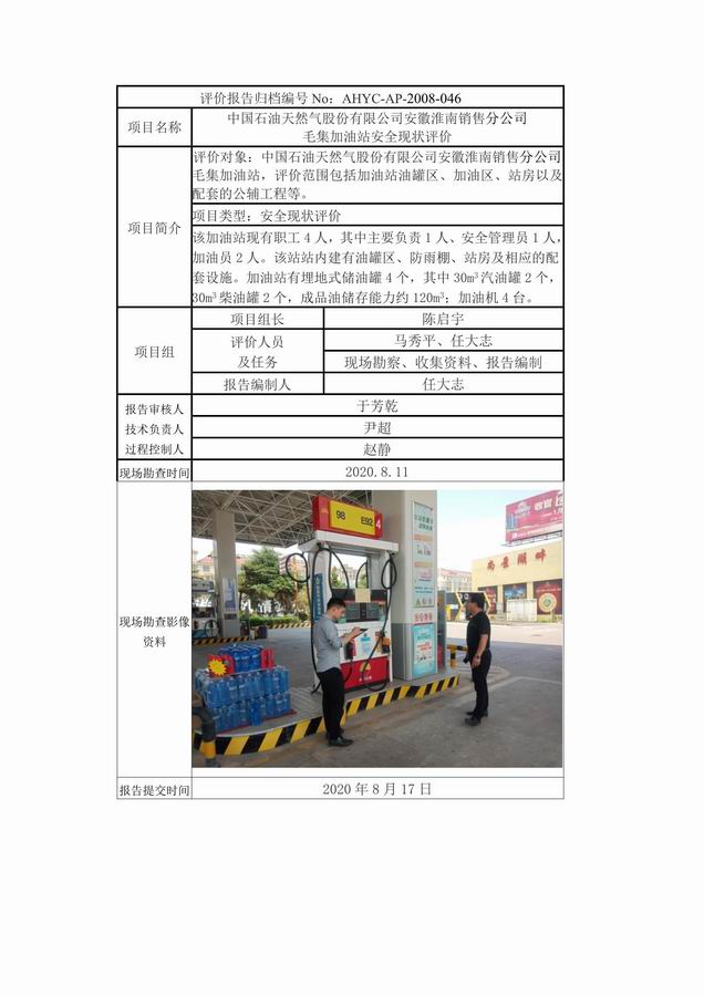 中國石油天然氣股份有限公司安徽淮南銷售分公司 毛集加油站安全現狀評價