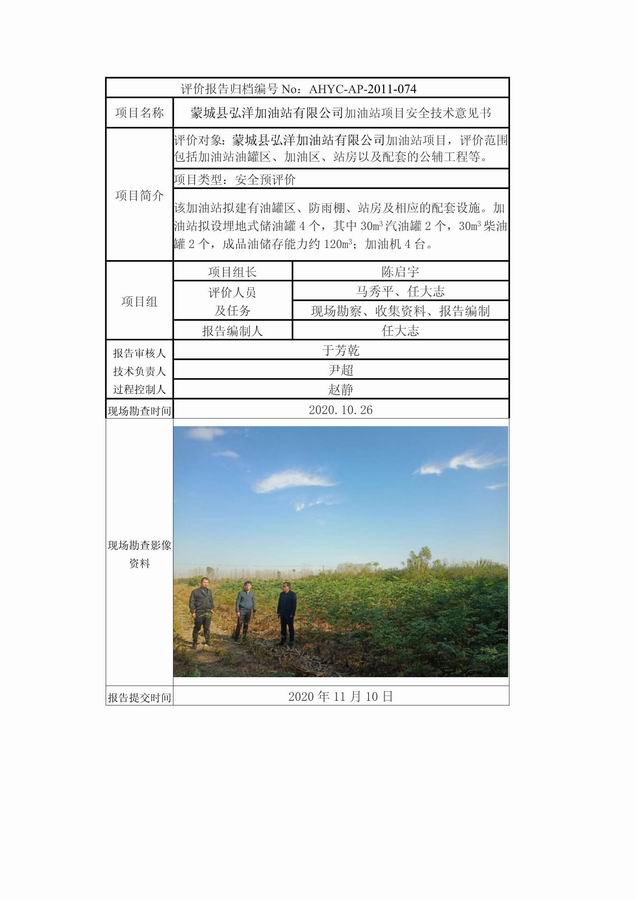 蒙城縣弘洋加油站有限公司加油站項(xiàng)目安全技術(shù)意見(jiàn)書(shū)