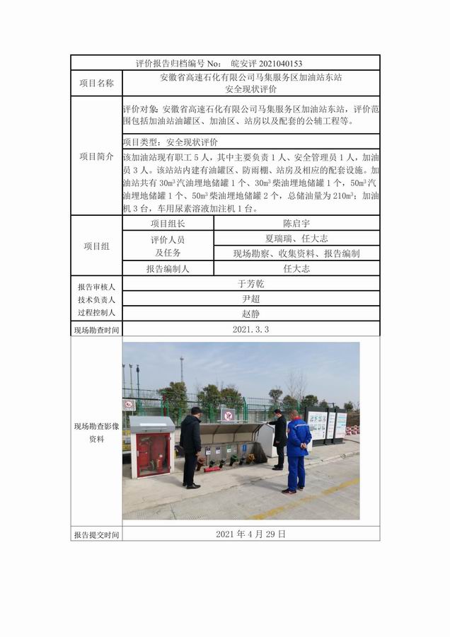 安徽省高速石化有限公司馬集服務(wù)區(qū)加油站東站 安全現(xiàn)狀評(píng)價(jià)