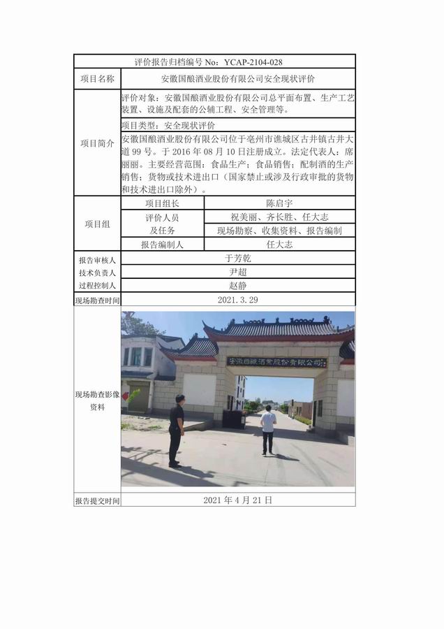 安徽國釀酒業(yè)股份有限公司安全現(xiàn)狀評價