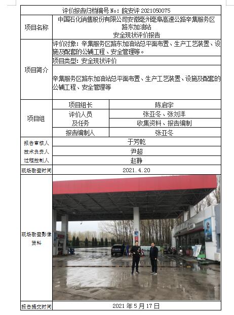 中國石化銷售股份有限公司安徽亳州亳阜高速公路辛集服務區(qū) 路東加油站 安全現(xiàn)狀評價報告