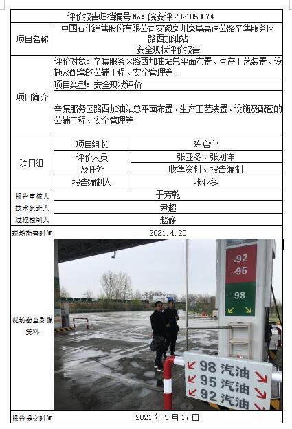 中國石化銷售股份有限公司安徽亳州亳阜高速公路辛集服務區 路西加油站 安全現狀評價報告