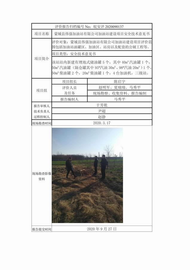 蒙城縣偉強加油站有限公司加油站建設項目安全技術意見書