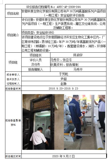安徽豐原生物化學(xué)股份有限公司年產(chǎn)30萬(wàn)噸氨基酸系列產(chǎn)品項(xiàng)目(一期工程)安全驗(yàn)收評(píng)價(jià)報(bào)告