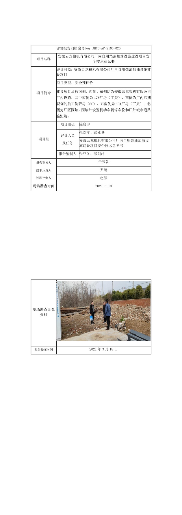 安徽云龍糧機(jī)有限公司廠內(nèi)自用柴油加油設(shè)施建設(shè)項(xiàng)目安全技術(shù)意見(jiàn)書(shū)