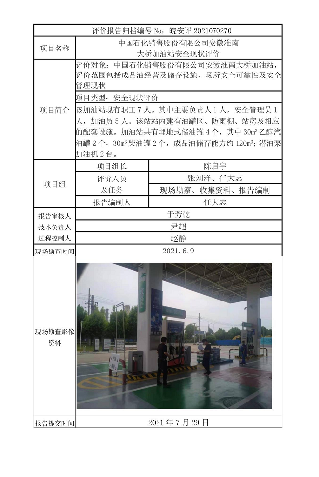 中國石化銷售股份有限公司安徽淮南 大橋加油站安全現狀評價