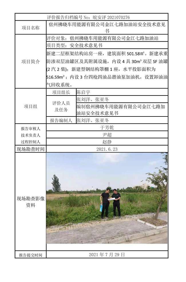 宿州拂曉車用能源有限公司金江七路加油站安全技術(shù)意見書