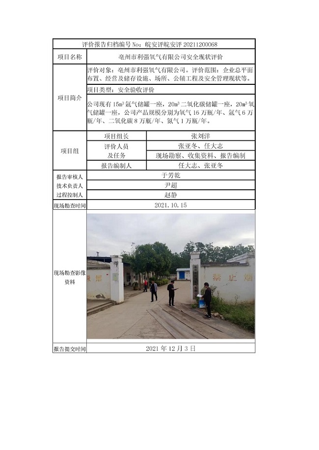 亳州市利強(qiáng)氧氣有限公司安全現(xiàn)狀評價