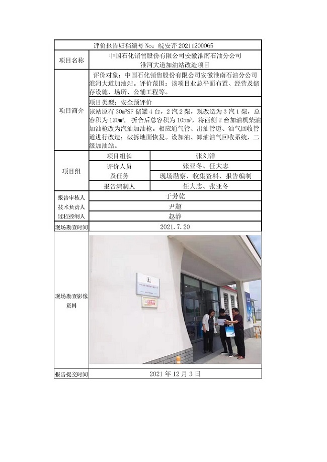 中國石化銷售股份有限公司安徽淮南石油分公司淮河大道加油站改造項目