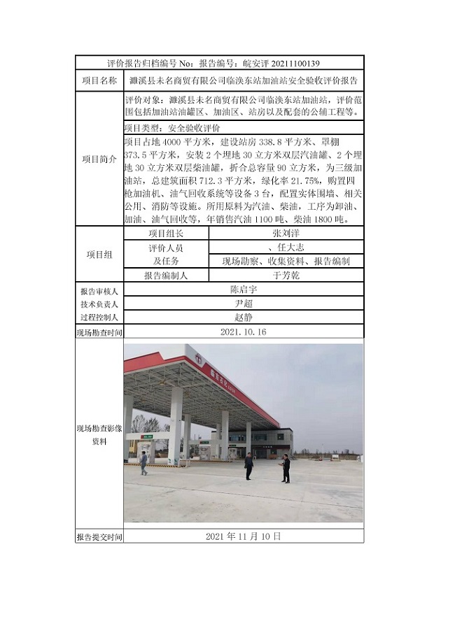 濉溪縣未名商貿(mào)有限公司臨渙東站加油站安全驗(yàn)收評(píng)價(jià)報(bào)告