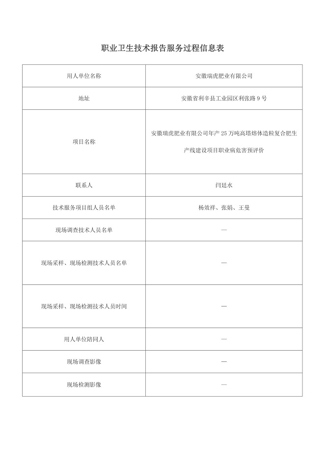 安徽瑞虎肥業(yè)有限公司建設(shè)項(xiàng)目職業(yè)病危害預(yù)評價(jià)