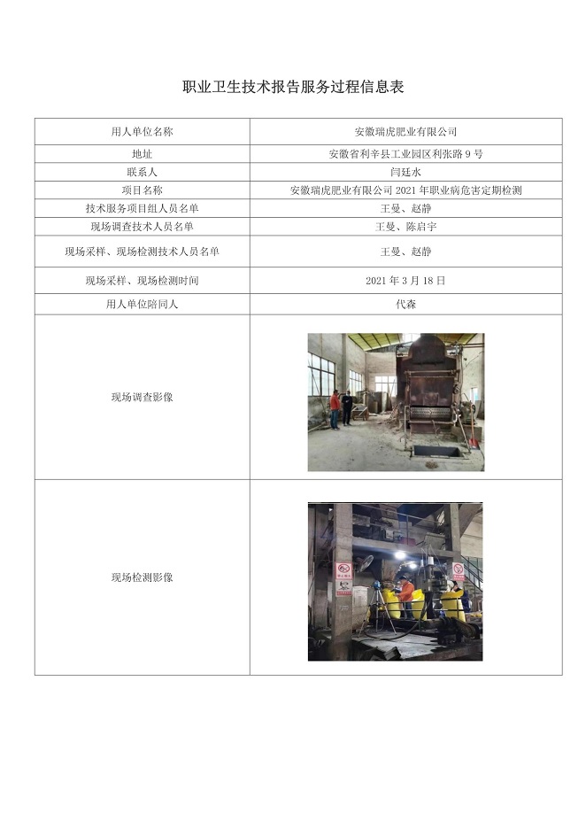 安徽瑞虎肥業(yè)有限公司2021年職業(yè)病危害定期檢測(cè)