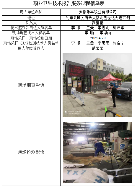 安徽禾豐牧業(yè)有限公司2021年職業(yè)病危害因素檢測(cè)