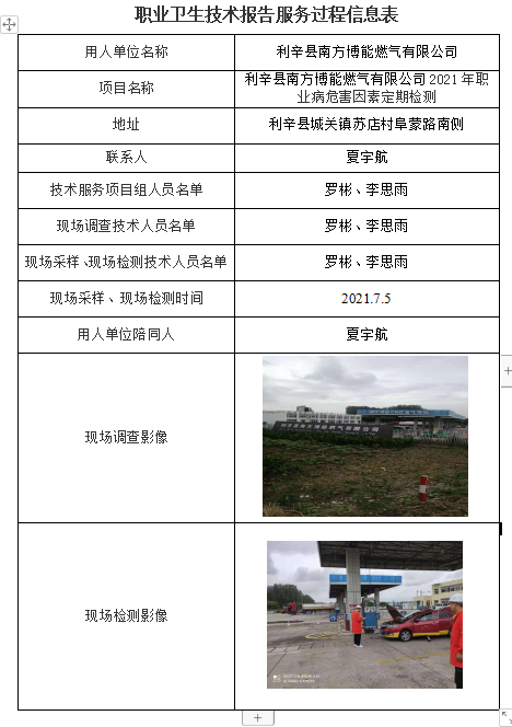 利辛縣南方博能燃氣有限公司2021年職業(yè)病危害因素定期檢測