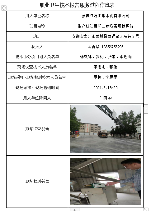 蒙城縣萬佛塔水泥有限公司職業(yè)病危害現(xiàn)狀評價