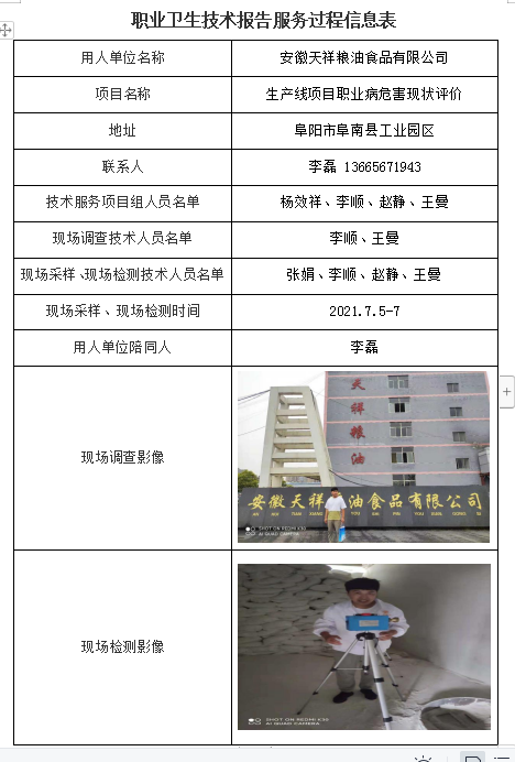 安徽天祥糧油食品有限公司職業(yè)病危害現(xiàn)狀評價