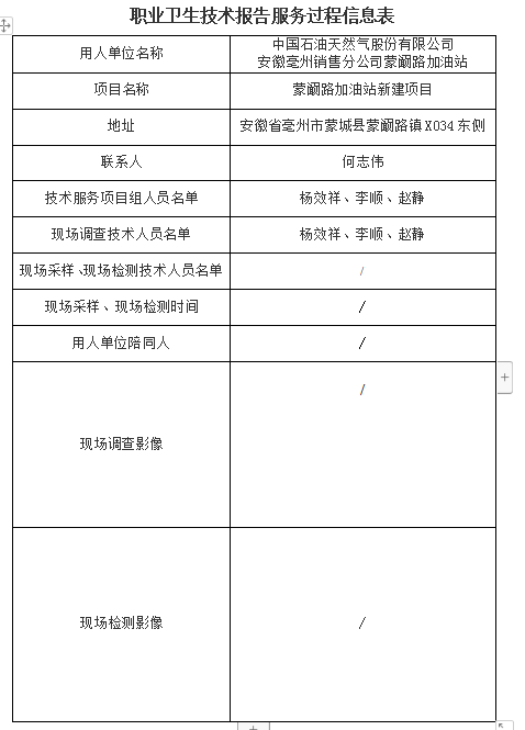 中國石油天然氣股份有限公司安徽亳州銷售分公司蒙闞路加油站職業病預評價