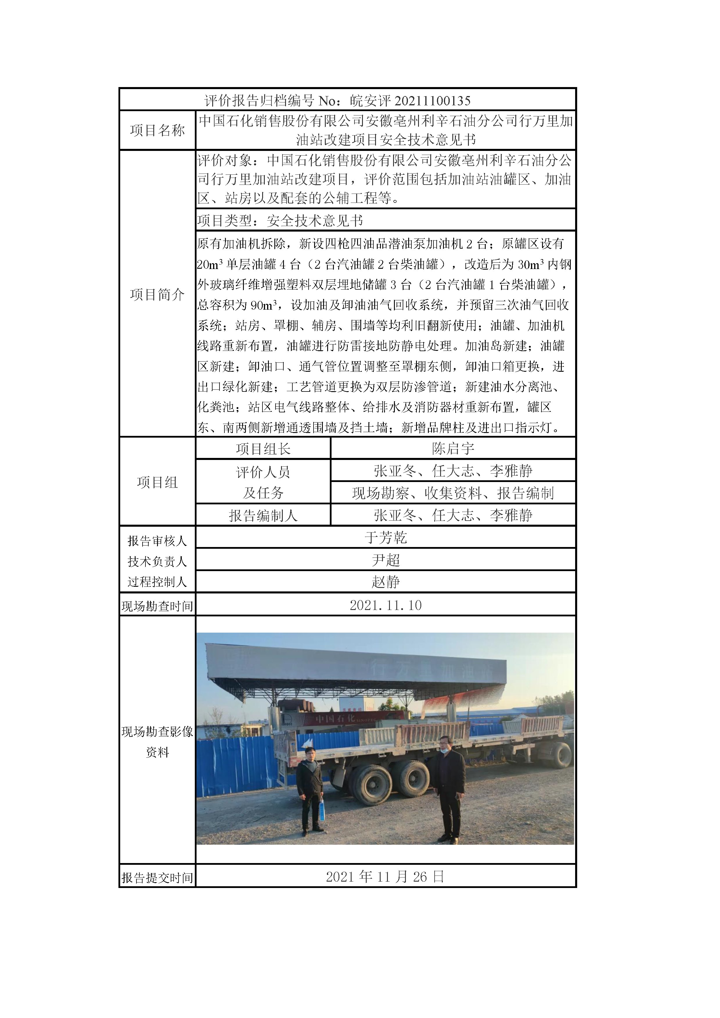 中國石化銷售股份有限公司安徽亳州利辛石油分公司行萬里加油站改建項目安全技術意見書