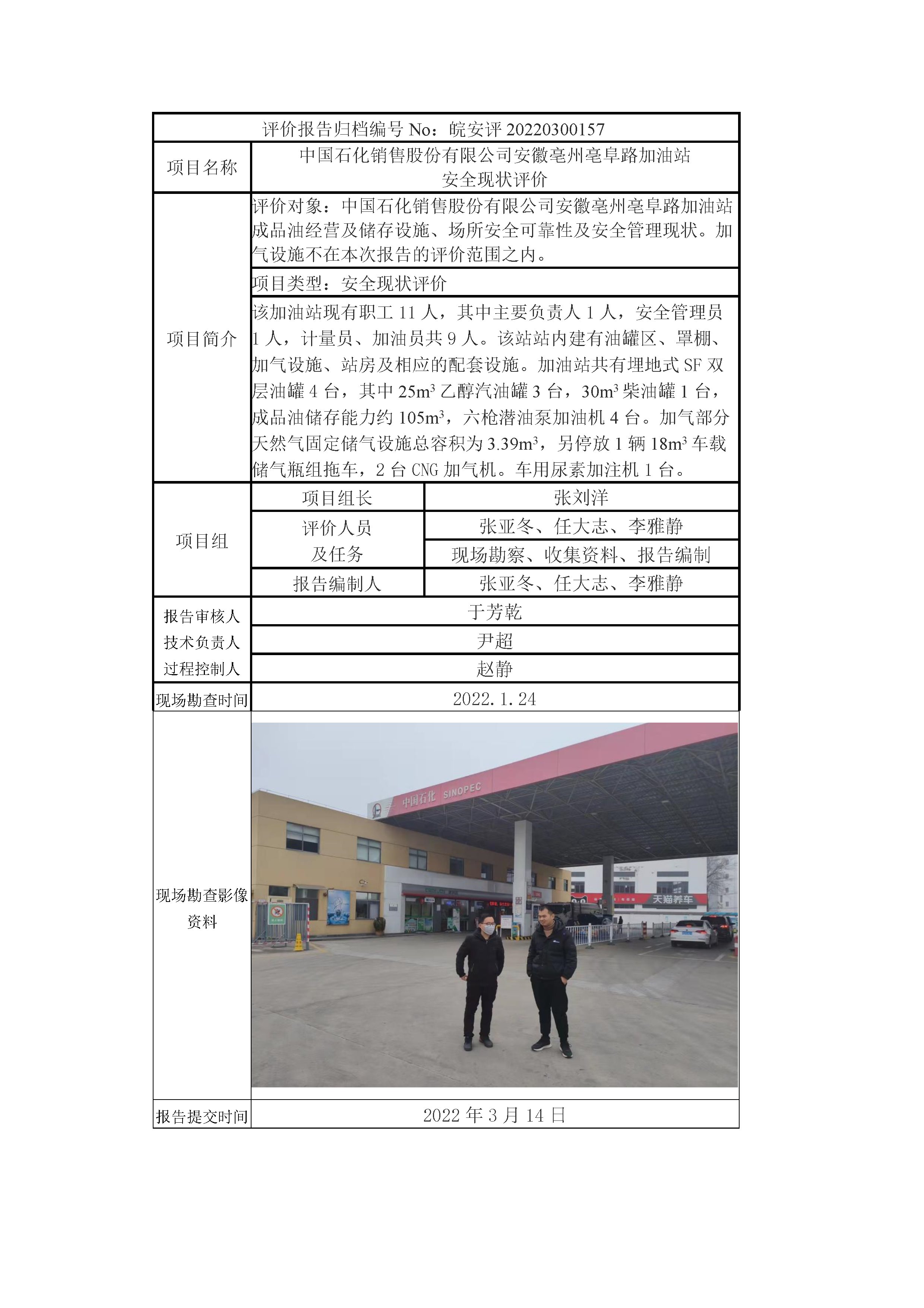 中國石化銷售股份有限公司安徽亳州亳阜路加油站安全現(xiàn)狀評價