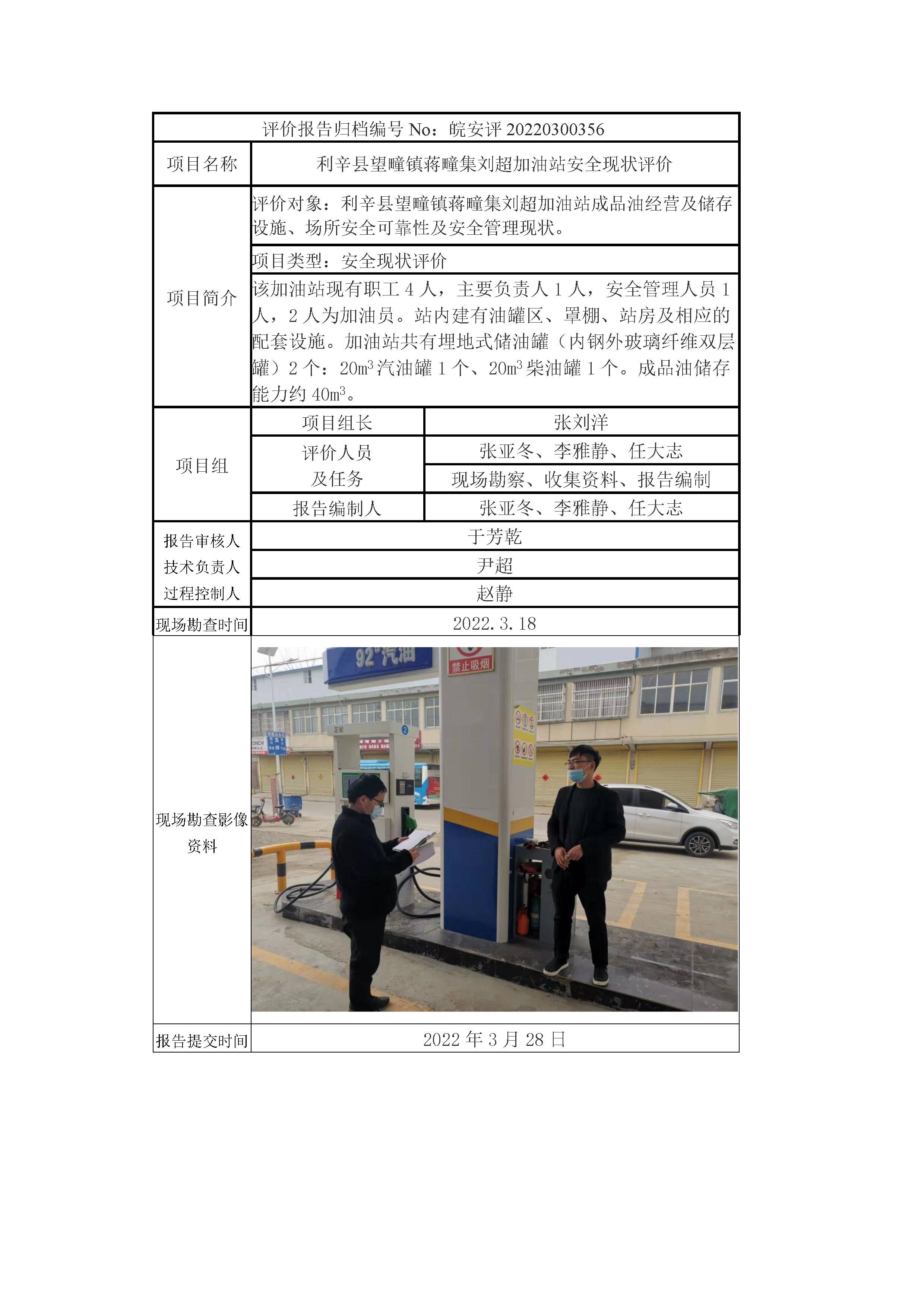利辛縣望疃鎮(zhèn)蔣疃集劉超加油站安全現(xiàn)狀評價