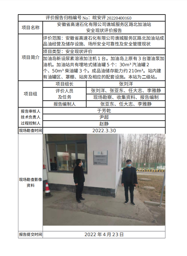 安徽省高速石化有限公司譙城服務區路北加油站 安全現狀評價報告