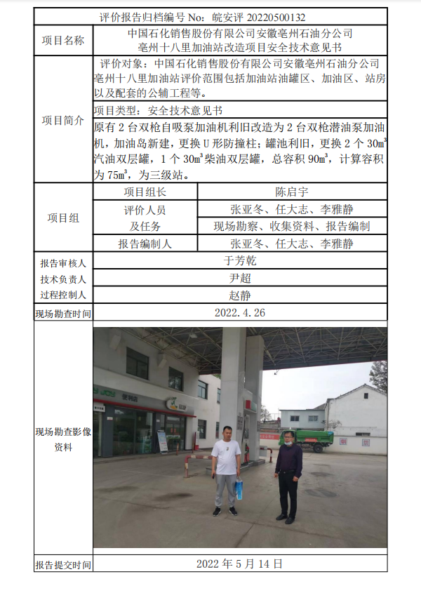 中國石化銷售股份有限公司安徽亳州石油分公司 亳州十八里加油站改造項目安全技術意見書