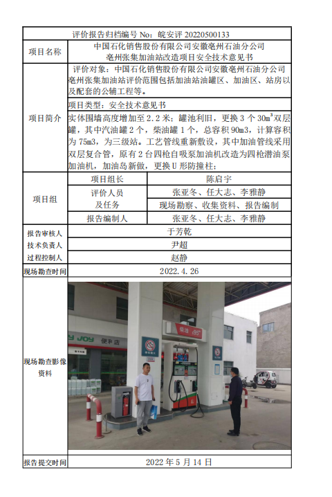中國石化銷售股份有限公司安徽亳州石油分公司 亳州張集加油站改造項目安全技術意見書