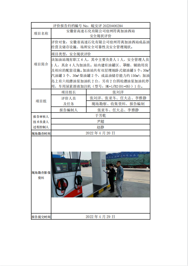 安徽省高速石化有限公司宿州符離加油西站安全現(xiàn)狀評(píng)價(jià)