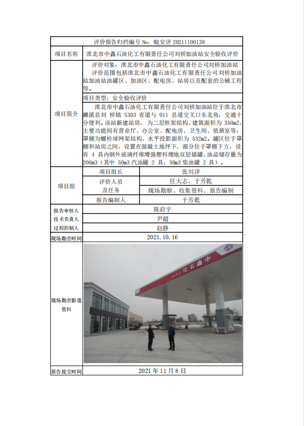 淮北市中鑫石油化工有限責(zé)任公司劉橋加油站安全驗(yàn)收評價