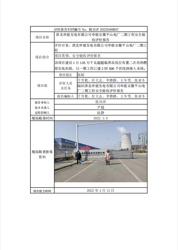 淮北申能發(fā)電有限公司申能安徽平山電廠二期工程安全驗收評價報告