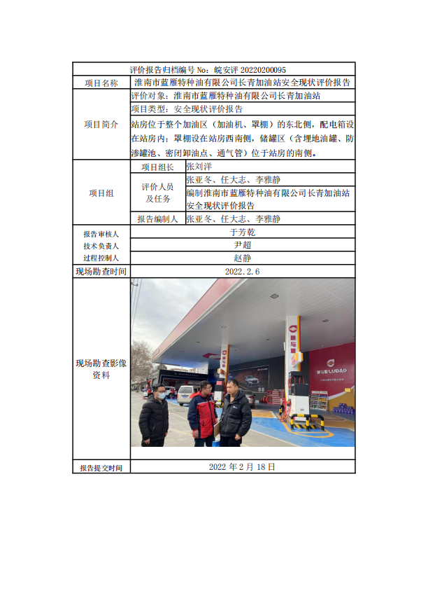 淮南市藍(lán)雁特種油有限公司長(zhǎng)青加油站安全現(xiàn)狀評(píng)價(jià)報(bào)告