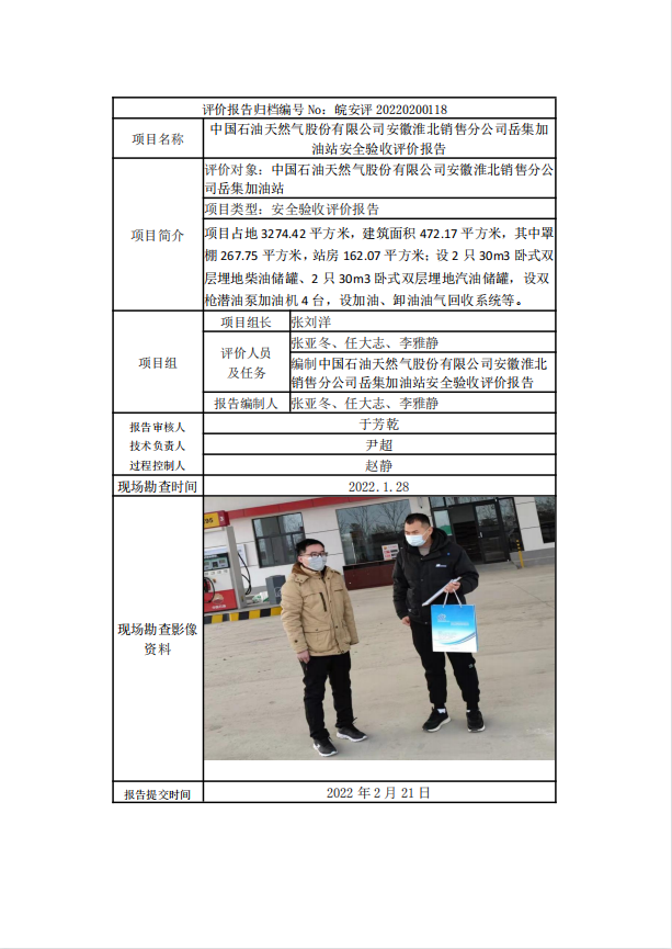 中國石油天然氣股份有限公司安徽淮北銷售分公司岳集加油站安全驗收評價報告