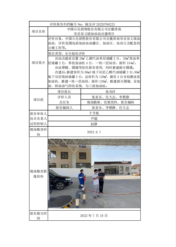 中國石化銷售股份有限公司安徽淮南壽縣保義鎮加油站改建項目安全驗收評價