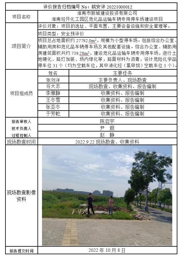 淮南市新城建設投資有限公司 淮南經開化工園區危化品運輸車輛專用停車場建設項目