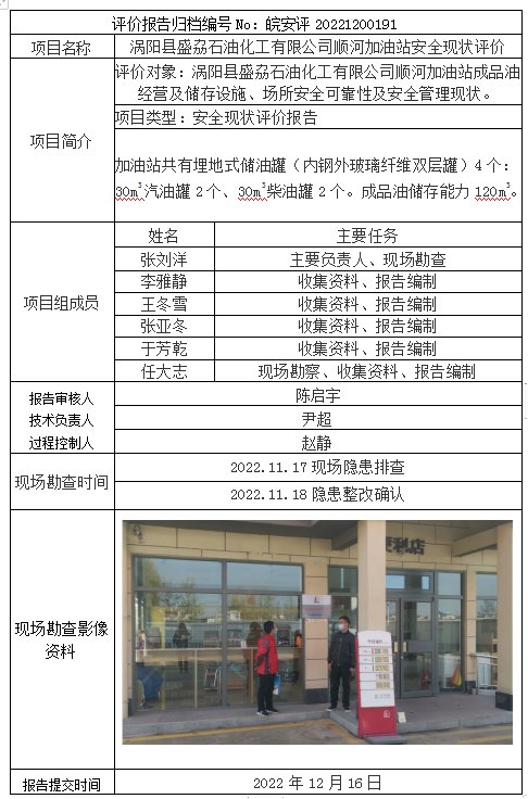 渦陽縣盛劦石油化工有限公司順河加油站安全現(xiàn)狀評價